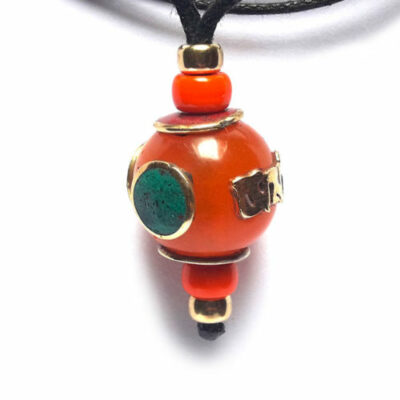 Pendentif en perle népalaise fait main en résine ambre et pâte de corail avec le mantra »om mani padme hum » gravé sur du laiton . Laisser un commentaire Annuler la réponseVous devez être connecté pour publier un commentaire.