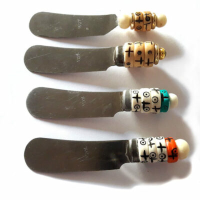 couteau a beurre en inox. collection TOTMANI. manche en os gravé bouddha