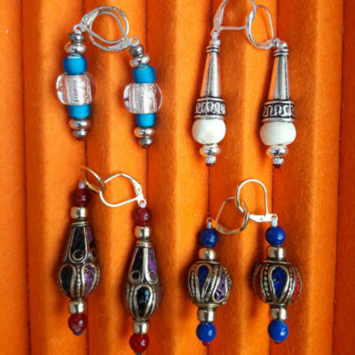 cone-bone, nepal, nepali, boucles d’oreilles. Assortiment
