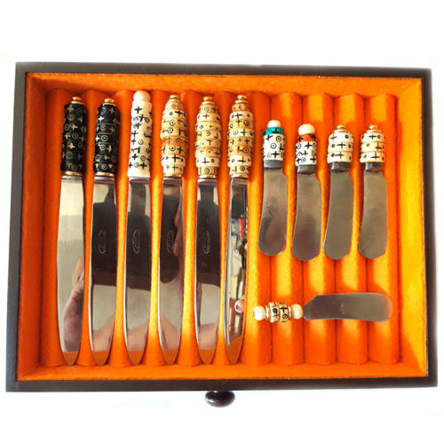 ouvre lettres, assortiment, manche en os gravé noir, blanc et gold