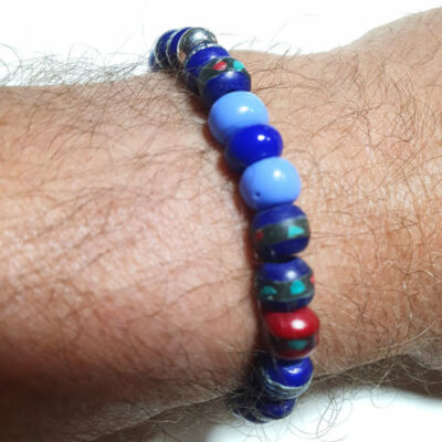 bracelet nepali (unisex) bleu ciel, en os, au poignet