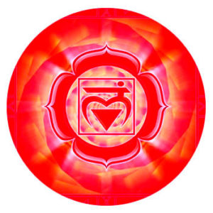 C’est le chakra racine, se situant au niveau du périnée, il nous ancre avec l’énergie de la Terre (Mère). Il est relié aux glandes surrénales et aux organes sexuels, et stimule l’ensemble du corps (os, sang, muscles) et influence notre température, énergie globale et la croissance des enfants. Nos fonctions de survie, auto-préservation (notamment la protection du territoire, conscience primaire), l’assurance et la conscience du monde matériel sont en lui. D’une certaine façon, on pourrait le comparer au magma en fusion noyau de la Terre. Toucher à lui imprudemment serait comme « réveiller les volcans de la planète » *. Mais stimuler ce chakra est quelque chose d’extraordinaire au point de vue énergétique.