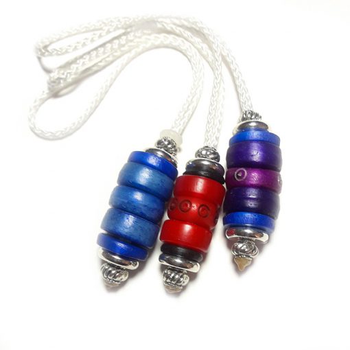 Les 3 corps de bouddha »sathi’‘ réalisés en os sont proposé en 4 variantes: violet, ocre, rouge et bleu. Le sathi s’accroche à un sac, à la ceinture d’un jean c’est un objet qu’on porte sur soi. Si vous êtes dans une réflexion profonde prenez-le dans la main et essayez de visualiser en lui les réponses à vos questions.