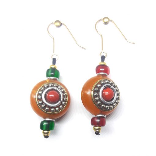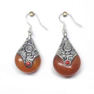 Boucles d’oreilles tears ambre Fixation en argent 925, non allergique. C’est une larme en résine couleur ambre avec une coiffe en métal argenté. Bijoux typique du Népal et du Tibet, discret et féminin,