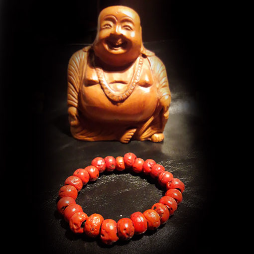 Bracelet fait main par les ateliers TOTMANI, fabrication main en perles de pâtes de verre couleur corail, d’où le nom. A noter le coté brut de la perle (non lissé), ça lui donne un coté naturel et sauvage.