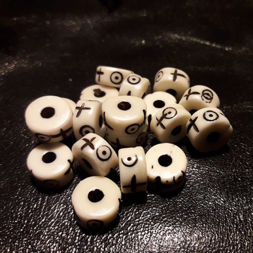 Bracelet dri fait main en os blanc gravé avec la symbolique de la croix et du cercle.