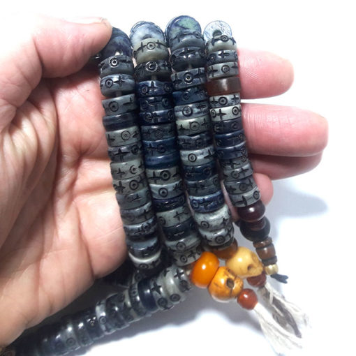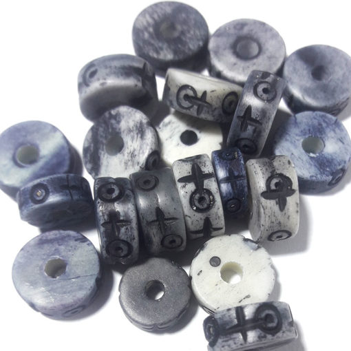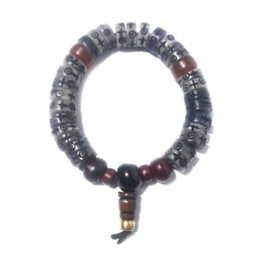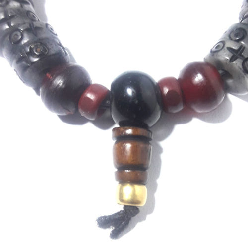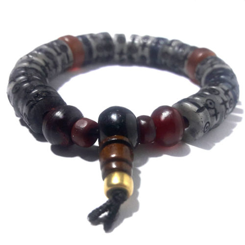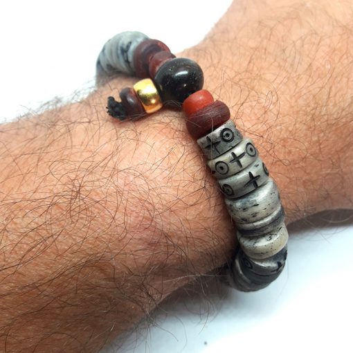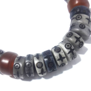 Bracelet nak homme, L’Os du bracelet est teinté main couleur anthracite/bleu pétrole.pour arriver à cet effet de coloration des perles il faut respecter plusieurs étapes. La teinture de base est l’encre de seiche mélangé avec d’autres pigments, puis séché et passé au tambour avec d’autres ingrédients pour avoir cet effet . (… secret de fabrication) Très beau bijou pour un homme!