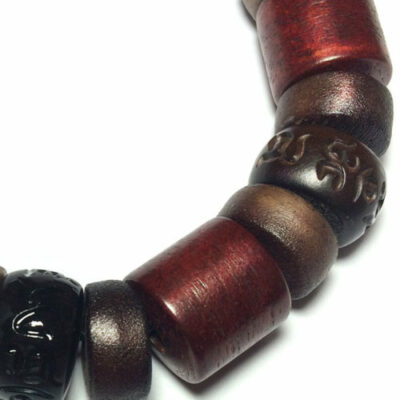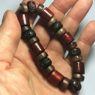 Bracelet pour homme, fait main en os, et bois de différents types (santal, pin) , incrustation du mantra Tibetain »om mani padme hum ».