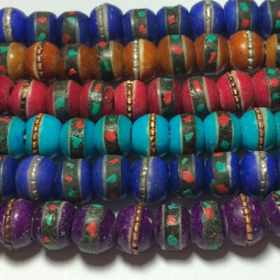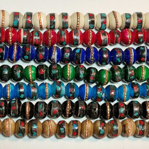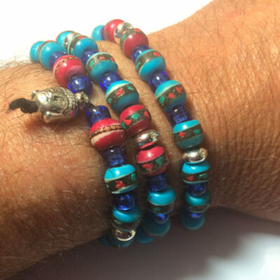 Bracelets Nepali Yak en os , fabriqué selon la tradition ancestrale du Tibet et du Népal. Chaque bracelet est teinté à la main, ce qui lui confère une multitude de nuances de couleurs rappelant les eaux cristallines des montagnes.