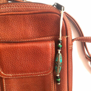 Le charm green  est fait d’un corps en résine avec des motifs en laiton incrusté d’écailles de turquoise