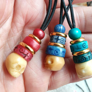 Les Chörten constituent l’expression architecturale la plus répondue du Bouddhisme, de forme pyramidale ils représentent Bouddha assis. Les Chörten, sont aussi appelés Stupa ou Dagoba. Trés beau collier plein de profonde signification. Il est fait main en os de yak avec des rondelles en or (dorure à 3 micron) symbolisant le grand lama.