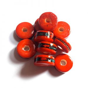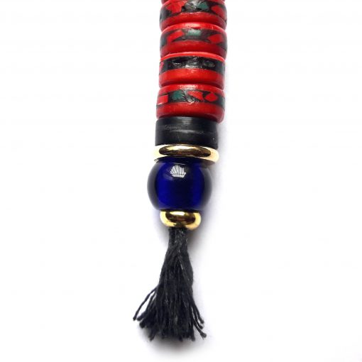 Ces perles sont d’origine Népalaises utilisés par les moines pour confectionner les malas (chapelets de prière). Les perles sont en os de Yak ou de buffle, avec de la pâte de corail et de turquoise incrusté. A noter la symbolique des matériaux utilisés: