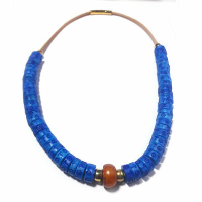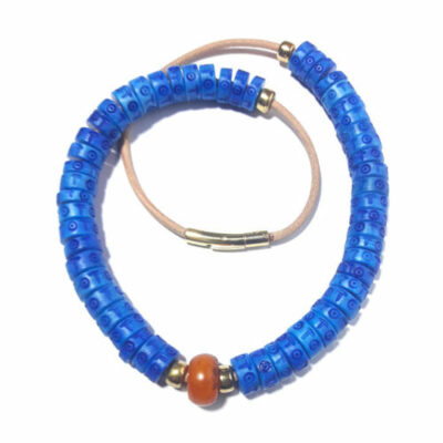 Collier lumen est gravé, teinté et finalisé main. Les rondelles en os sont gravée avec la symbolique de l’œil de Bouddha, protecteur, et de la croix qui vous aide à trouver votre direction et votre chemin spirituel dans le vie. C’est un très joli bijou, lumineux et rayonnant. La perle centrale est en substitut d’ambre, ce collier peut être aussi porté par un homme.