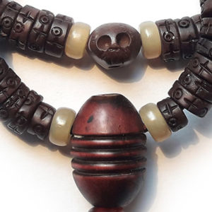 Collier Zenji « maître zen » est un titre honorifique accordé à un religieux et plus particulièrement à un grand maître du bouddhisme. Cet ancien mala à 108 perles est fait main en os de Yak ou de buffle (origine de l’os non confirmé) .
