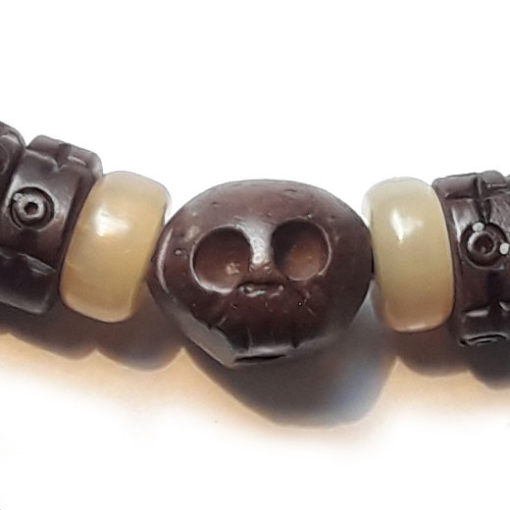 Les perles en os sont gravée main avec les symboles de la croix (les 4 chemins qui amènent au nirvana) et du cercle (signe protecteur, bouddha vous observe, vous guide, vous protège). symbolique