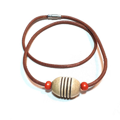 Le Collier medieval terre et est un bijou un typique des hommes de la terre vivant à l’époque médiévale. Ne pouvant pas se permettre de l’or et des pierres précieuses comme la seigneurie ils devaient se contenter à fabriquer leur propres bijoux, avec le material qu’ils avaient à disposition, l’os, la corne, le bois, le cuir, avec le matériau qu’ils avaient à disposition; l’os, la corne, le bois, le cuir.