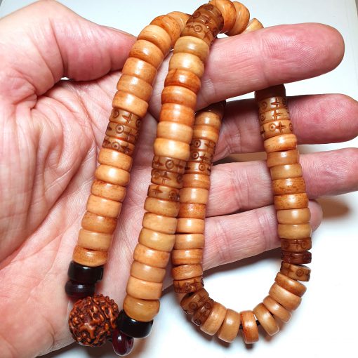 #gianinloringett #totmani #nepal #tibet #fait #main #collier #mantra #spiritualité #bouddha #meditation #tombesurunos #bonebeads #loringett #rudraksha