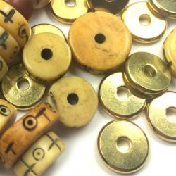 Les perles en os comportent des gravures avec la symbolique du cercle et de la croix