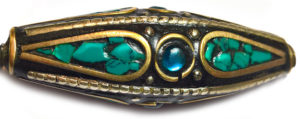 Porte bonheur et protecteur tel un talisman, objet favorisant la méditation il surprend par son esthétique inhabituelle. Fait main perle avec des motifs en laiton avec des écailles de turquoises. Cet objet est typique de l’artisanat Népalais-Tibétain. Tout objet bouddhiste, n’est pas seulement symbole de prière ou de méditation, mais aussi une œuvre d’art à grande valeur spirituelle.