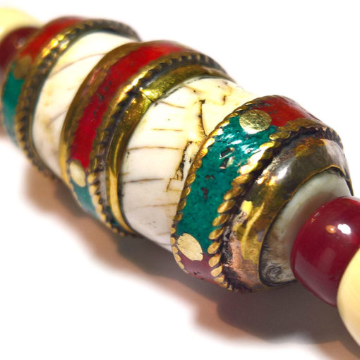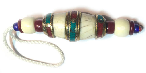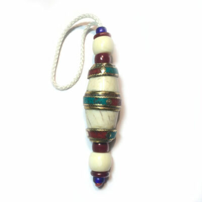 Porte bonheur et protecteur tel un talisman, objet favorisant la méditation il surprend par son esthétique inhabituelle. Fait main en coquillage, laiton, os de yak et verre et par des artisans des montagnes du Népal. Cet objet est typique de l’artisanat Népali-Tibétain. Tout objet bouddhiste, n’est pas seulement symbole de prière, mais aussi une œuvre d’art à grande valeur spirituelle.