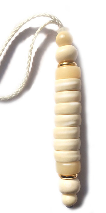 Namaste est un chapelet de prière Népalais avec 9 éléments faits en os. C’est un objet  chargé en énergie positive il vous surveille, guide et protège. Il est fait main par l’atelier TOTMANI et proposé en 4 couleurs, chaque couleur a sa puissance et efficacité.