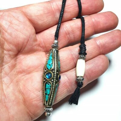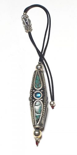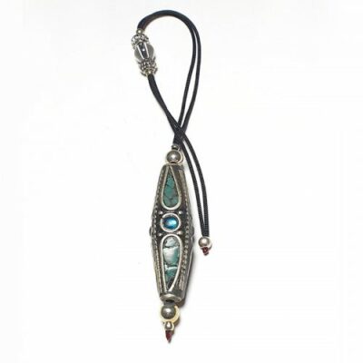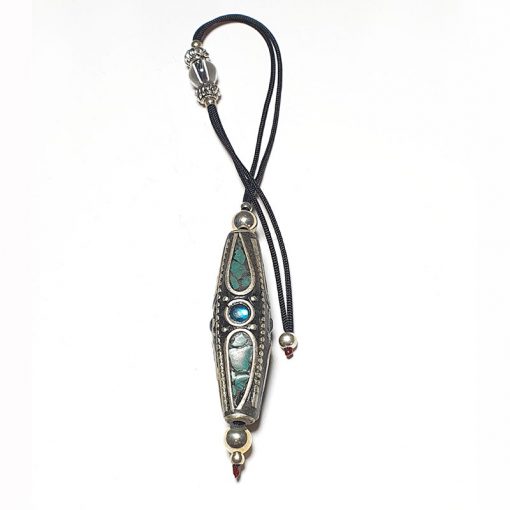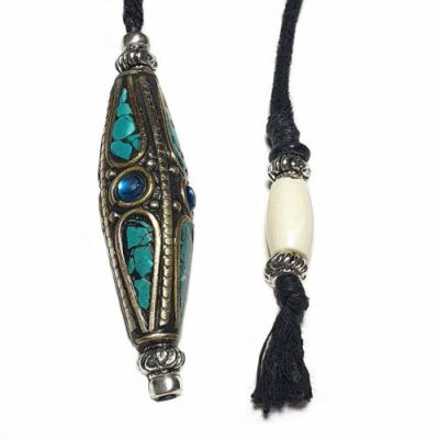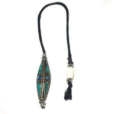 Pendule Pendulum KATMANDOU et POKHARA, en pierre mélangée avec écailles de turquoise sertis de métal argenté, léger et confortable.