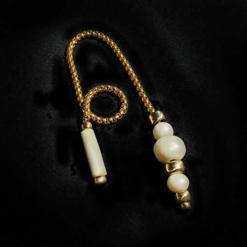 Pendule pendulum népalais fait dans la pure tradition artisanale avec des perles en os lissé.