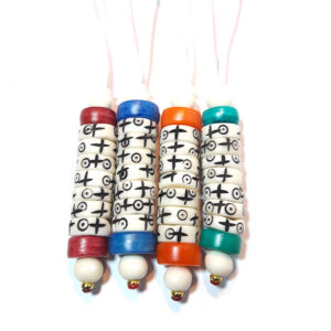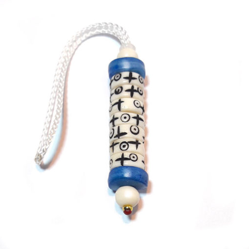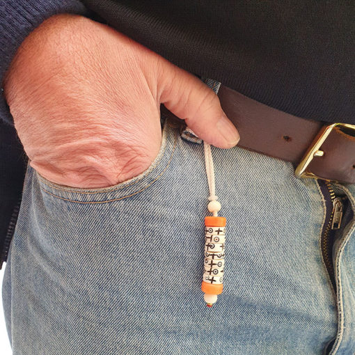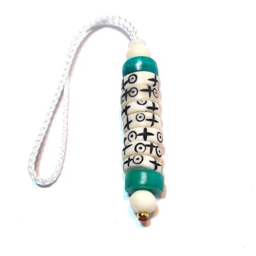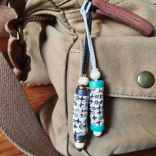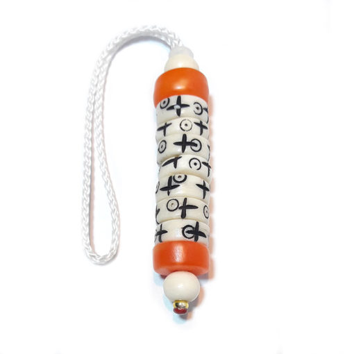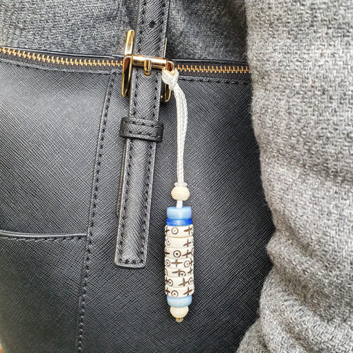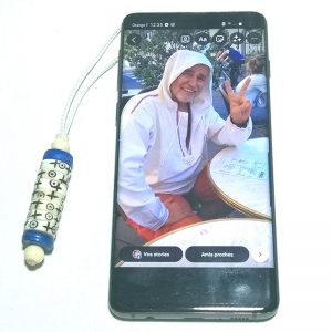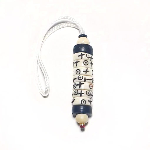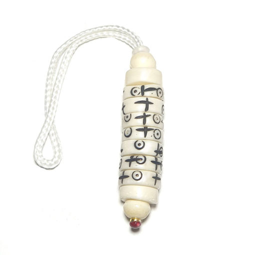 Le mani  »pense à moi » est fait main  avec 7 rondelles en os de yak  »actives et 2  »passives », ces rondelles sont gravés avec 2 symboles:
