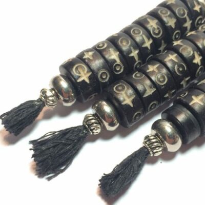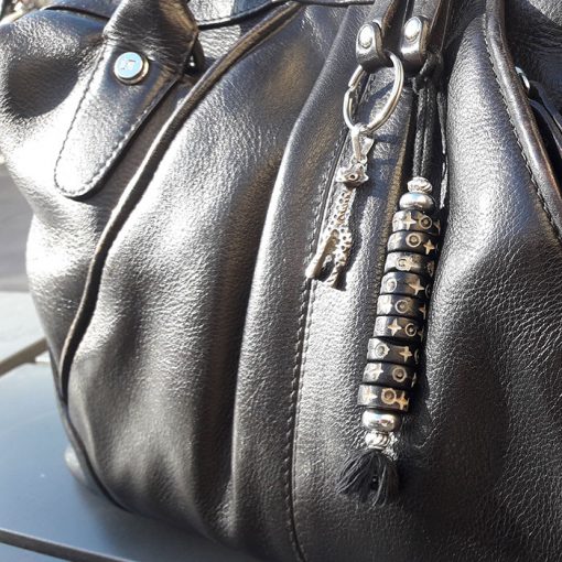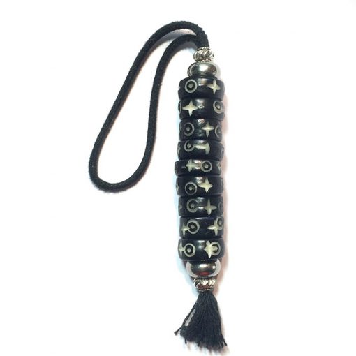 Mani Yodha en os noir, métal et fil de coton, fait entièrement main. c’est un puissant bag charm qui vous accompagne et protège.